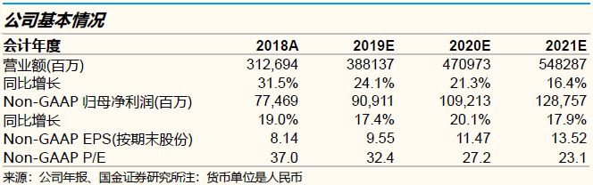 我们预计腾讯2019-2021E Non-GAAP EPS为9.55/11.47/13.52元。基于DCF得出目标价348港元,维持“中性”评级。
