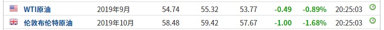 因迹象显示经济前景仍然黯淡,美油跌超1.5%,另外美国原油库存连续第二周意外增加,也打击了市场情绪。截至20:25,WTI原油跌0.89%,报54.74美元/桶。布伦特原油跌1.68%,报54.48美元/桶。