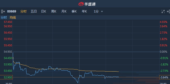 截至14时28分,跌3.64%,报价52.95港元,成交额2.102亿。