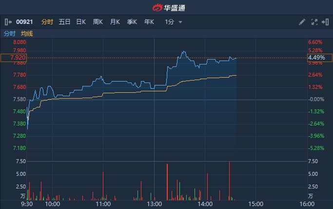 智通财经APP获悉,海信家电(00921)将于本月22日发布财报,此前曾以2500万元增持海信日立0.2%股权至49.2%。截至发稿,涨4.49%,报7.92港元,成交额820.74万港元。