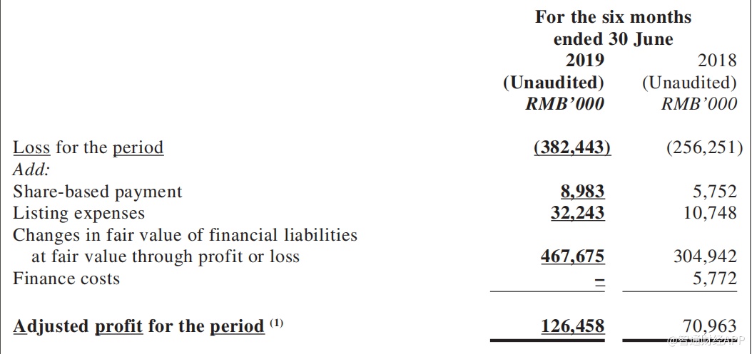 按照上市公司的行业惯例,财报的分析者一般会更加关注“经调整后利润”这一项目。兑吧2019年上半年影响金额较大的调整项目主要有三个,分别是“以公允价值计量且其变动计入损益的金融负债的公允价值变动”,“以权益结算的股份激励费用”还有“上市费用”。详细如下: