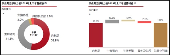 万洲国际是全球最大的猪肉食品企业,业务主要由中国及美国两块组成:中国业务主要是在A股上市的双汇发展;美国业务在Smithfield下发生,覆盖区域主要有美国、波兰、罗马尼亚、墨西哥、英国及若干西欧国家。