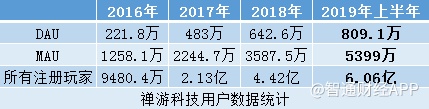 智通财经APP发现,从2016年至今,禅游科技的用户规模已有质的改变。2016年时,注册玩家不足1亿,但至2019年上半年,该数值已增至6.06亿。且2019年上半年的MAU较2016年时翻了4.29倍,DAU则翻了3.65倍。