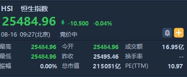 智通财经APP获悉,恒生指数开盘跌10.5点或0.04%,报25484.96点。国企指数涨0.02%,报9905.17点。红筹指数涨0.35%,报4038.39点。大市盘前成交16.96亿港元。