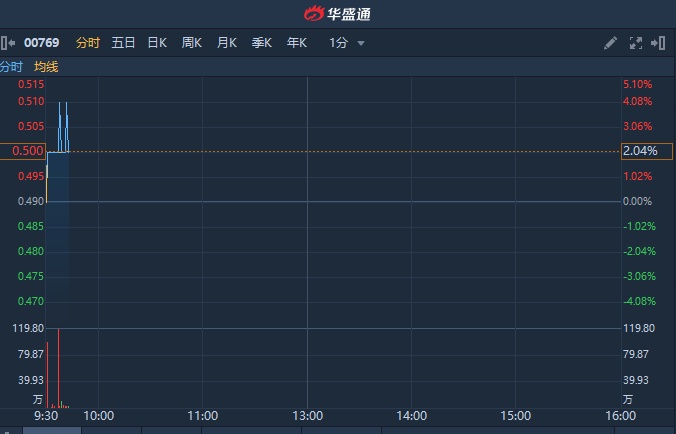 智通财经APP获悉,A股稀土永磁板块开盘大涨,中国稀土(00769)随之上行。截至发稿,涨4.08%,报0.51港元,成交额114.49万港元。