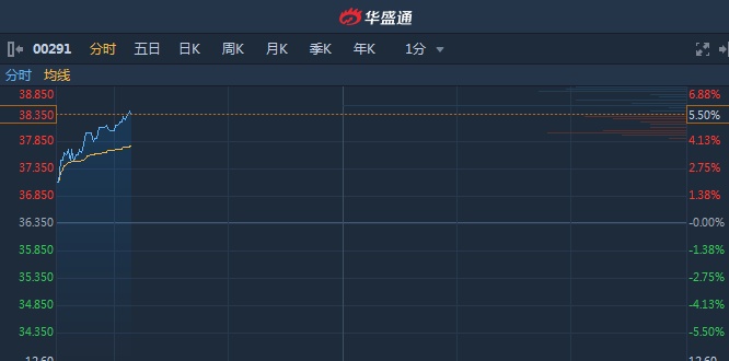 智通财经APP获悉,华润啤酒(00291)将于今日披露中报,市场憧憬业绩增长,该股早盘持续走高,截至10时08分,涨5.5%,报价38.35港元,成交额5759万。