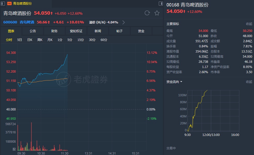 智通财经APP获悉,大和发表报告称,青岛啤酒(00168)上半年纯利同比增长25%,高于该行预期,收入则增长9%,同时在销售均价开始改善下,经营利润率按年扩张1.2个百分点。受惠中国高端啤酒市场加速,青岛核心品牌上半年销量同比增长6%。基于中绩强劲及经营利润率有改善趋势,重申青啤“跑赢大市”评级,将目标价由52.6港元升至53港元。