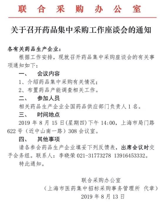 智通财经APP跟踪发现,8月15日下午2时,有关部门日前已就全国范围内推开“4+7”带量采购试点进行相关部署。从知情的参会人口中得知,“要求未实行地区上报公立医疗机构相关药品2017年、2018年实际采购数据。”
