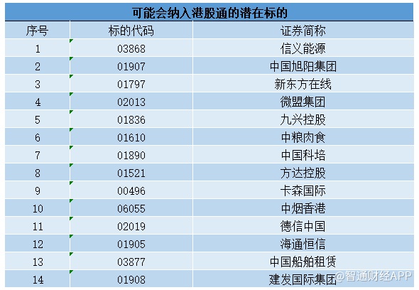 智通财经APP根据恒指公司公布的综合指数变动及港股通指数变动情况,并结合各券商机构预测,梳理出最有可能新加入港股通标合计23只,供投资者参考,准确的港股通变动名单请以港交所、上交所、深交所官方公布为准。