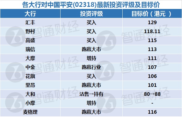 一,各大行对中国平安(02318)最新投资评级及目标价:
