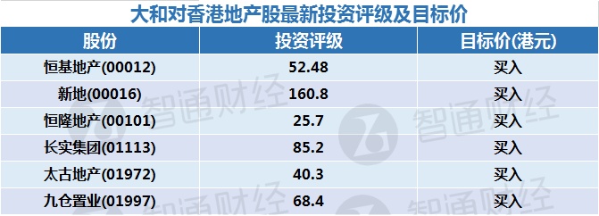 三、大和对香港地产股最新投资评级及目标价:
