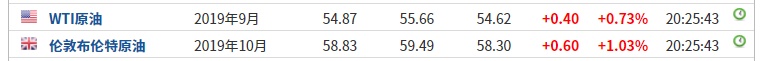 截至20:25,WTI原油涨0.73%,报54.87美元/桶。布伦特原油涨1.03%,报58.83美元/桶。