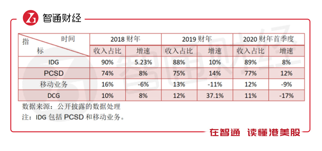 以下为智通财经APP整理的联想过去几年各项业务收入占比及增速情况:
