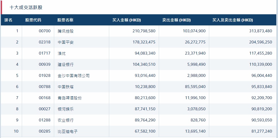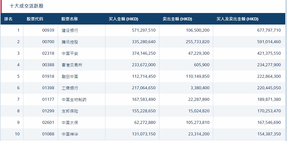 此外,友邦保险(01299)、融创中国(01918)均获青睐,净买入额分别为2.8亿、512.9万港元。
