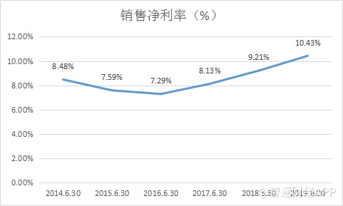 费用表现方面,公司2019上半年销售费用率同比上升0.27个百分点至18.06%;管理费用率下降0.25个百分点至3.57%;研发费用率维持0.05%水平不变;财务费用率上升0.17个百分点至-1.42%。