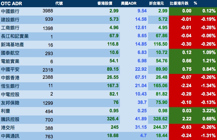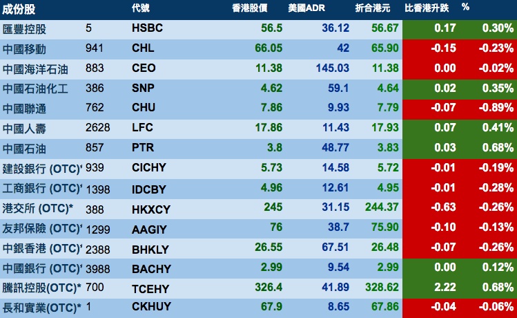 智通财经APP获悉,周五美股大幅度反弹,但港股ADR指数仅微升,按比例计算,收报25754点,升19.95点。大型蓝筹股个别发展,汇丰控股收报56.67元,较港收市升0.17元;腾讯控股收报328.62元,较港收市升2.22元。