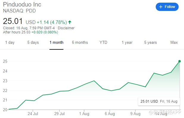 股价方面,拼多多今年迄今上涨约12%,过去一个月上涨超过20%。多数分析师机遇“买入”评级,12个月平均目标价为26.70美元。