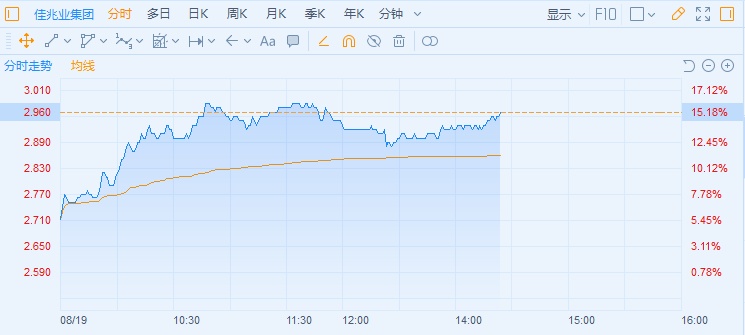 8月18日,中共中央、国务院发布《关于支持深圳建设中国特色社会主义先行示范区的意见》。深圳作为改革开放的重要窗口,从经济特区到“中国特色社会主义先行示范区”,在新时期被赋予了新使命。受消息刺激,深圳本地概念股集体大涨。佳兆业集团(01638)作为大湾区“网红”优质房企,受市场的追捧,股价一度大涨16.34%。截至14时28分,佳兆业依旧维持高位运行,涨15.18%,报价2.96港元,成交额激增至7006万港元。