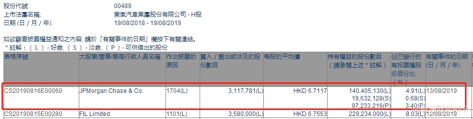 智通财经APP获悉,联交所最新资料显示,8月13日,摩根大通减持东风集团(00489)311.78万股,每股作价6.7117港元,总金额约为2092.57万港元。减持后最新持股数目约为1.40亿股,最新持股比例为4.91%。