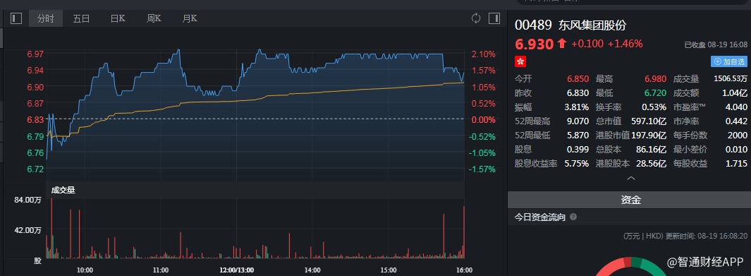 截至今日收盘,东风集团(00489)涨1.46%,报6.93港元。