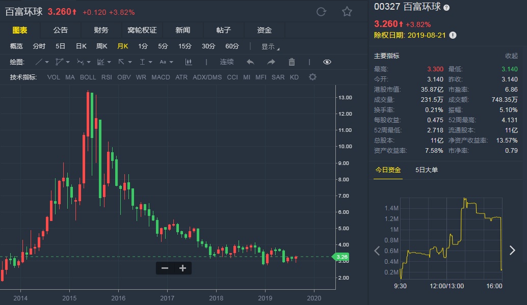 智通财经APP获悉,第一上海发表报告指出,百富环球(00327) 在2019年上半年业绩增长较为亮眼, 考虑到公司下半年业绩大概率会放缓, 同时考虑到公司的净现金水平较高,未来并购的市场较为充分, 故维持公司未来 12 个月目标价格为 4.30 港元,对应 2019/2020 年市盈率分别 8.6 /8.0 倍,估值吸引,维持买入评级。