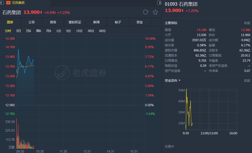 该行指出,石药第二季收入符合预期,由于研发开支较高,令其季内纯利低于该行预期,而管理层给予研发开支升幅稳定的指引。石药旗下创新药物销售同比增长56.4%,其中恩必普(NBP)增长39.5%,相信今年下半年增长势头可以持续。石药现价相当预测明年市盈率13.5倍,估值相较同业而言非常吸引。