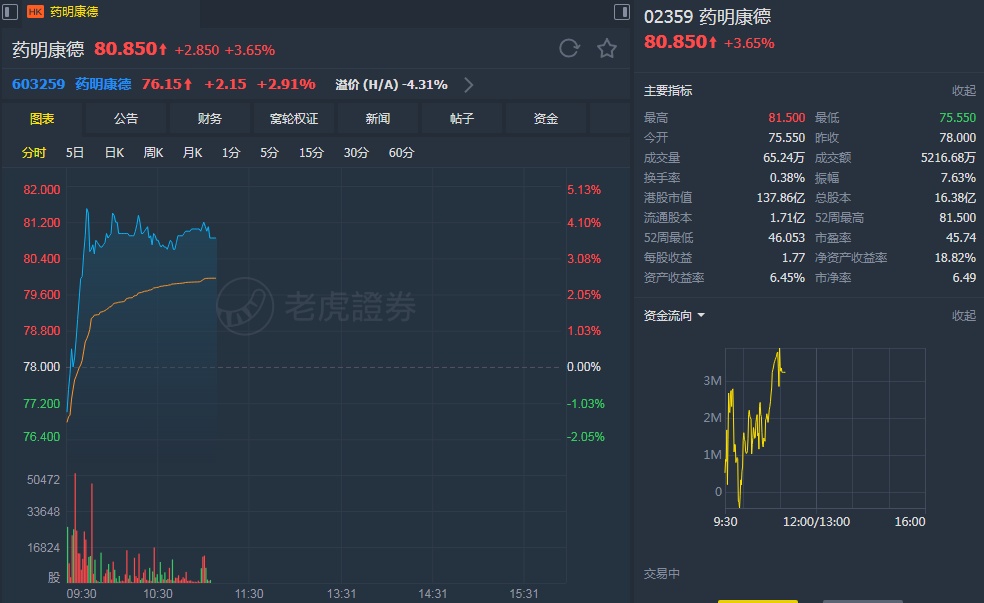 该行表示,药明康德公布截至今年6月30日止6个月的中期纯利约10.57亿元人民币,同比下降16.9%,每股盈利65分人民币,不派中期息。剔除公允价值变动,公司调整后上半年净利润同比增长32%。