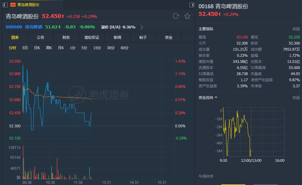 该行指出,青啤今年第二季核心净利润(撇除一次性减值亏损)同比增长29%,高于该行预期,相信主因受较佳毛利率所带动。虽然对中国啤酒前景看法正面,但关注华润啤酒(00291)收购喜力中国后对青啤之高端啤酒业务带来的竞争压力。