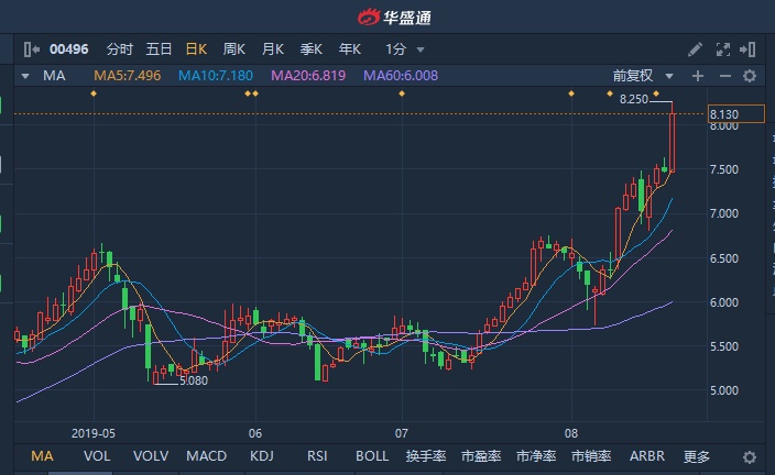 智通财经APP获悉,卡森国际(00496)将于下周三发布财报,此前曾发盈喜,中期纯利预增100%至140%。截至发稿,涨8.54%,报8.13港元,成交额1634.97万港元,股价再创历史新高,7月初至今累涨超40%
