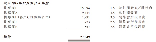 从供应商来看,公司的主要供应商包括网络会所代理商、软件开发商以及服务器托管服务供应商。截至2018年12月31日,公司的五大供应商采购金额为2780万元,占同期总采购金额的65.6%,同比增加了11个百分点。