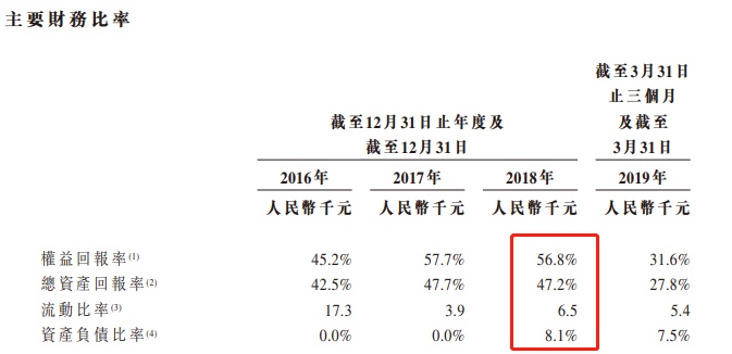 其它财务方面,公司截至2018年12月31日的总资产回报率为47.2%,流动比率为6.5,资产负债比率为8.1%。