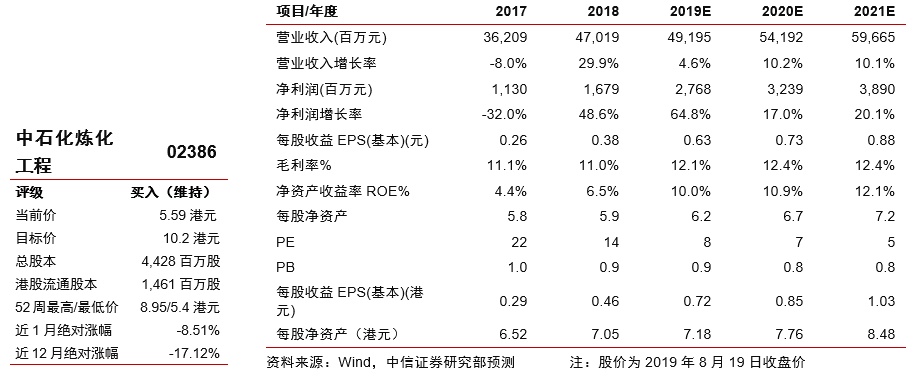 公司前期中科炼化一体化等大型EPC项目进入投产高峰,贡献上半年营业收入同比+24%,毛利率持平。公司上半年新签订单量超预期,在手订单充足保障未来业绩,行业整体复苏,公司业绩有望持续提升。参考同行业公司2020年12倍PE估值,给予目标价10.2港元,维持“买入”评级。