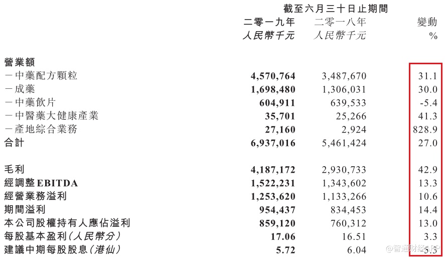 另外值得一提的是,2019年中期,公司对业务板块进行重列,于原先四大板块中新增产地综合业务发展成为五大板块。其中,该板块于今年上半年实现快速增长。据了解,该板块由原先的中药配方颗粒板块中所划分出来,若公司于报告期内未做此项划分,中药配方颗粒板块比重将一步增大。