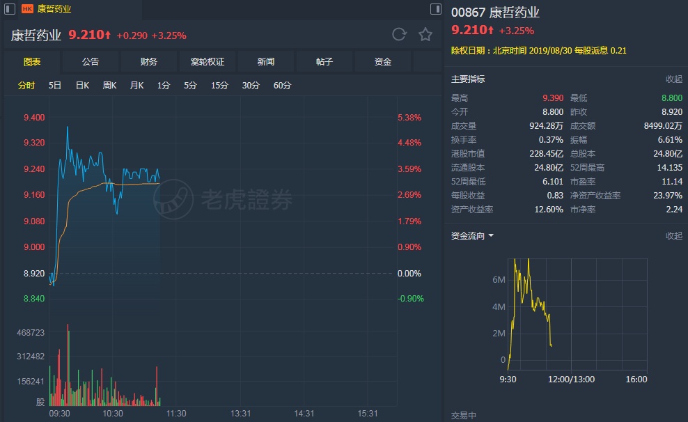 智通财经APP获悉,大摩发表报告称,康哲药业(00867)今年上半年纯利同比增长22%至11.7亿元人民币,表现优于预期。集团管理层预期,今年全年的纯利增长约20%,明年有双位数增长。该行上调康哲药业目标价,由10港元升至11.4港元,重申“增持”评级,并上调集团今年至2021年各年每股盈测分别9%、9%及8%。