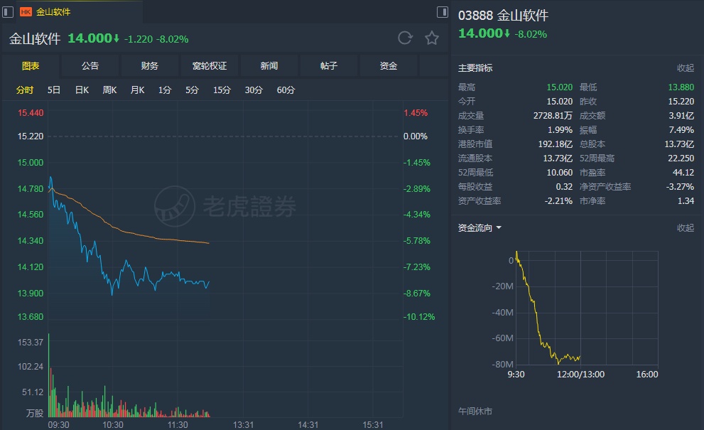 该行指出,金山第二季业绩差过预期并不意外,主要是由于手机版剑侠情缘3(JX 3)及其他旧游戏表现较弱。该行预计公司第三至第四季表现将继续受压,因为手机版JX 3升级及《FINAL FANTASY Brave Exvius》能见度有限,以及手机版剑侠情缘2(JX 2)延期推出。另外,金山软件云业务及WPS软件业务上半年收入继续同比增长约100%及超过30%,毛利率稳定。