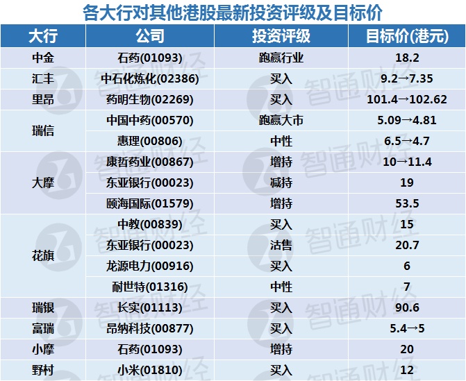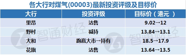 三、各大行对煤气(00003)最新投资评级及目标价: