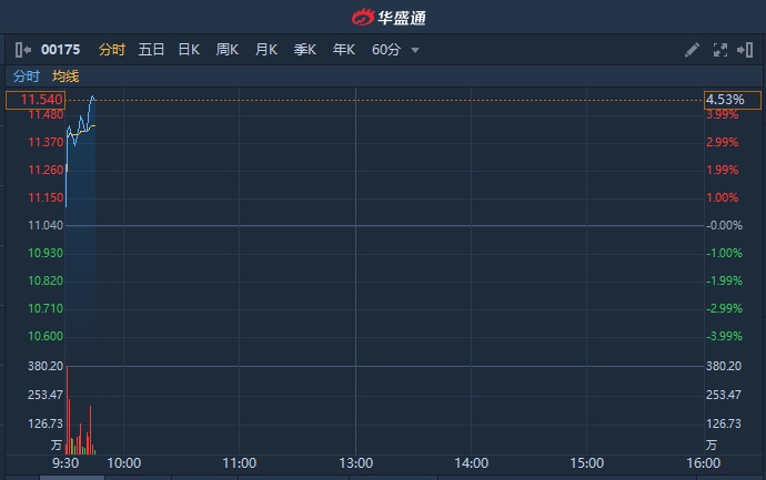 智通财经APP获悉,吉利汽车(00175)发布2019年中期业绩,收益约人民币475.6亿元人民币,纯利约40.1亿元。绩后获中金上调目标价逾20%。截至发稿,涨4.35%,报11.52港元,成交额1.78亿港元。