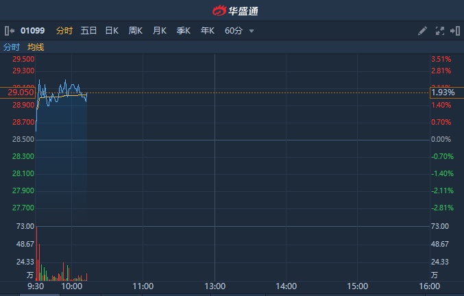 智通财经APP获悉,国药控股(01099)发布公告,A股附属公司国药股份发布中期业绩,上半年归母净利增18.66%至7.55亿元,国药股份涨停。国药控股将于明日发布财报,截至发稿,涨1.58%,报28.95港元,成交额1.16亿港元。