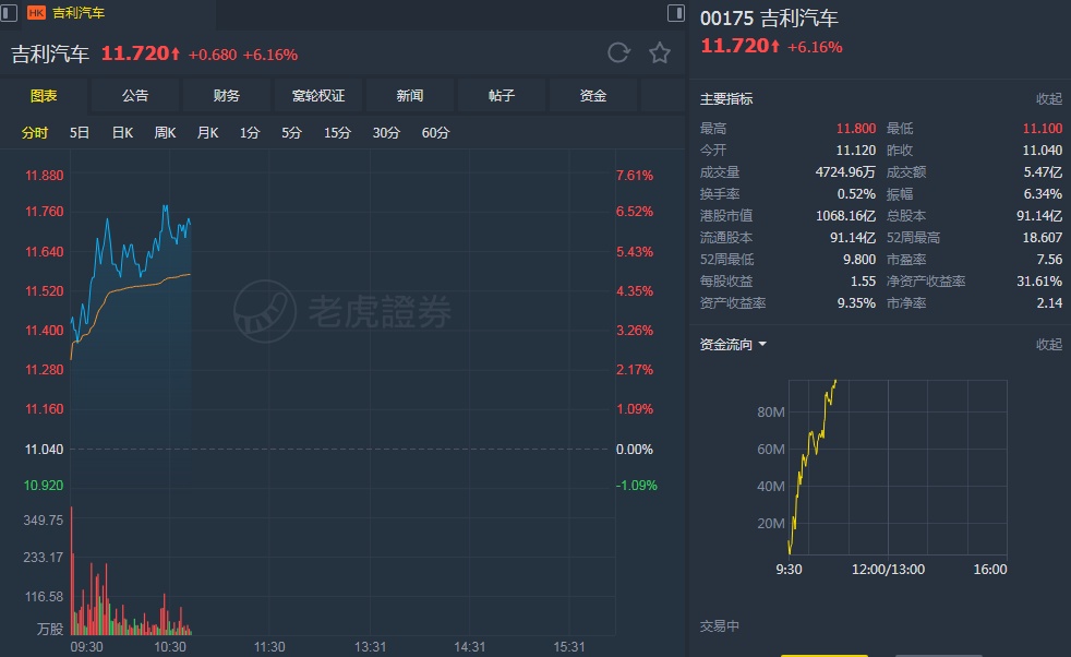 智通财经APP获悉,中金发表研究报告指出,虽然吉利汽车(00175)上半年净利润同比倒退,但净利润和经营性现金流依然稳健,考虑到投资者风险偏好有所修复,因此上调其目标价22.2%至11港元。