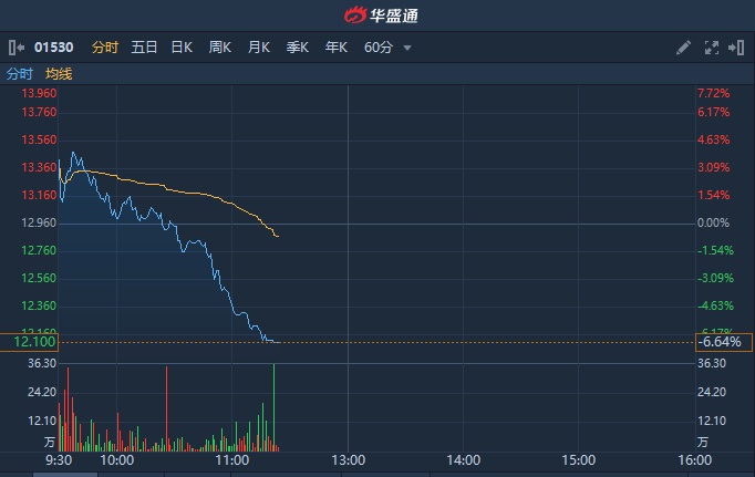 至约人民币26.42亿元。母公司拥有人应占纯利同比减少约37.5%至约人民币3.21亿元。截至发稿,跌6.64%,报12.1港元,成交额9692.36万港元。