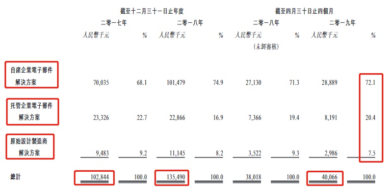 于过往业绩期间,公司以直接销售、通过渠道伙伴以及通过中间商三种方式向客户提供企业电子邮件解决方案,其中以直接销售的方式为主。2018年,直接销售带来的收益占总收益比重的50.2%,通过中间商销售占比为35.8%,而通过渠道伙伴获得的收益占比仅14%。
