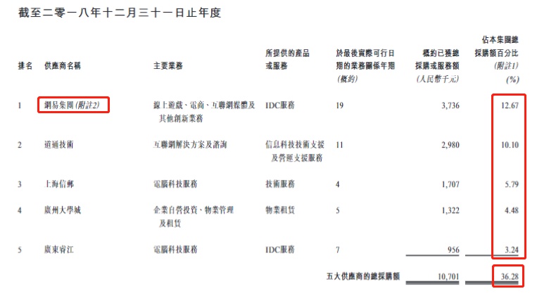 值得注意的是,公司的第一大客户及第一大供应商均为网易集团(NTES.US),同时,网易集团旗下全资附属公司香港网易为公司的第二大股东,根据创业板上市规则,香港网易及其控股公司网易集团将被失为主要股东。