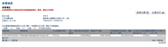 智通财经APP获悉,联交所最新资料显示,8月19日龙源电力(00916)获Wellington Mgt增持309.3万股,每股作价4.507港元,总值约为1394万港元,最新持股数目约为3.35亿股,最新持股比例为10.04%。