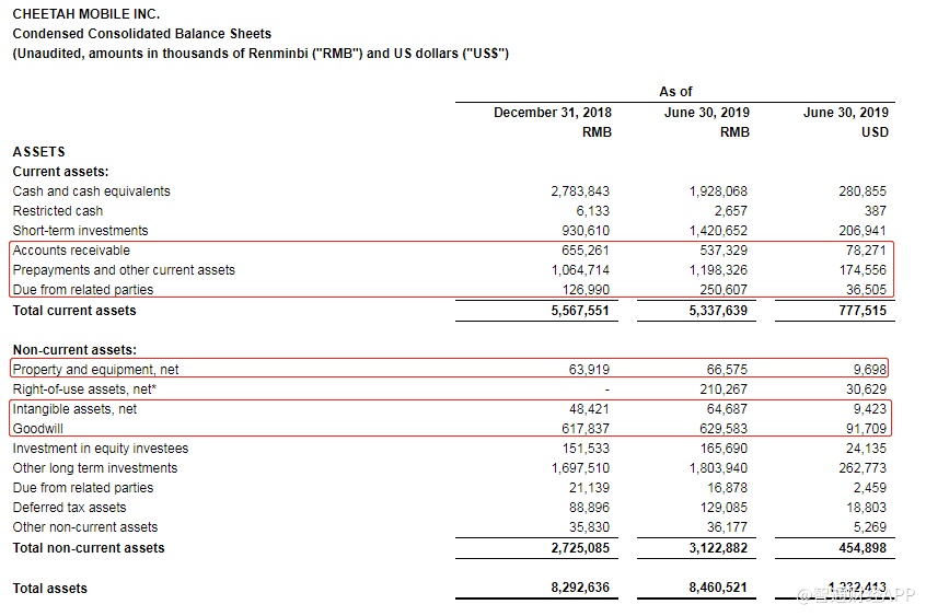截至8月20日收盘,猎豹的市值为6.43亿美元,显然没有足够的安全边际。而且,非流动资产中的股权投资和其他长期投资都没有调整。尤其是其他长期投资,这里面的投资大部分没有市场价格或者没按照市场价格记账,在清算时都将大幅打折。