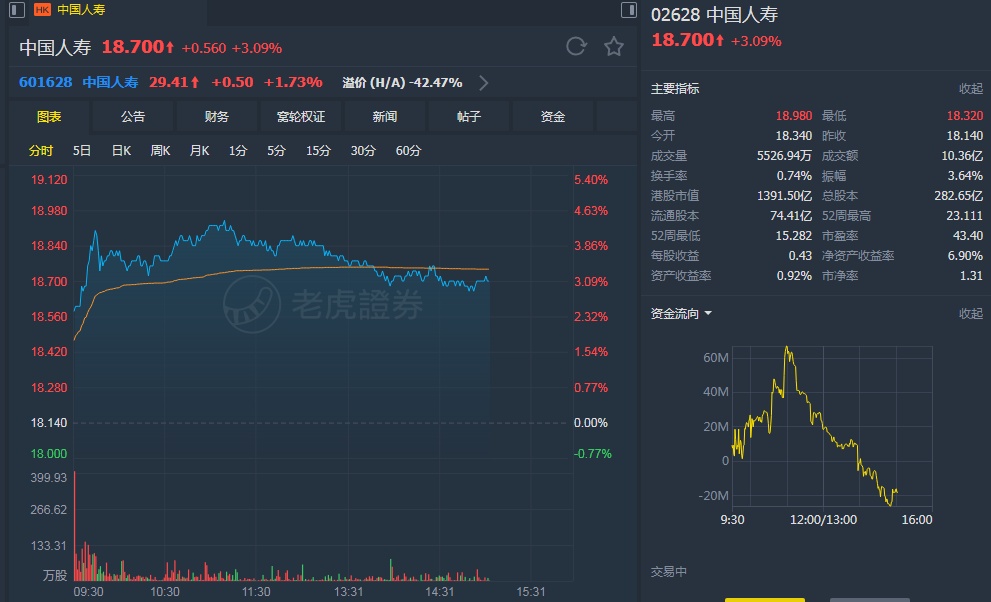 智通财经APP获悉,小摩发表报告称,调高中国人寿(02628)目标价,H股由43港元升至45港元,A股由38元人民币升至38元人民币,重申为“增持”首选股。