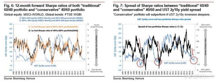 大多数投资者都在等待即将到来的央行年会,在鲍威尔透露他目前的立场之前,投资者们可能不会采取太多的行动。如果美债2年-10年的曲线再次倒挂,长期投资者仍有可能转向更保守的投资立场。我们很难直接衡量长期投资者的行为,但是当比较60%股票和40%债券的投资组合(通常被视为长期投资的标准模式)与40%股票和60%债券的保守投资组合时,我们看到后者在收益率曲线反转时往往表现更好。这表明,如果对全球经济放缓的担忧持续,长期参与者可能会逐渐将投资比重从股票转移到债券。