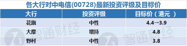 一、各大行对中电信(00728)最新投资评级及目标价: