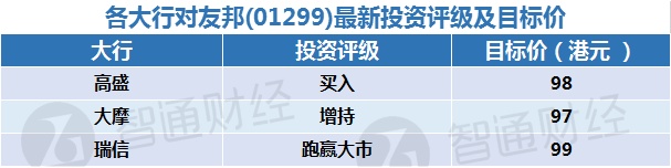 二:各大行对友邦(01299)最新投资评级及目标价: