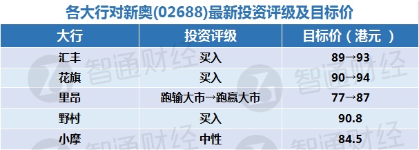 三:各大行对新奥(02688)最新投资评级及目标价: