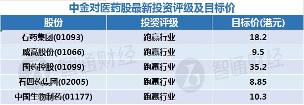 七:中金对医药股最新投资评级及目标价: